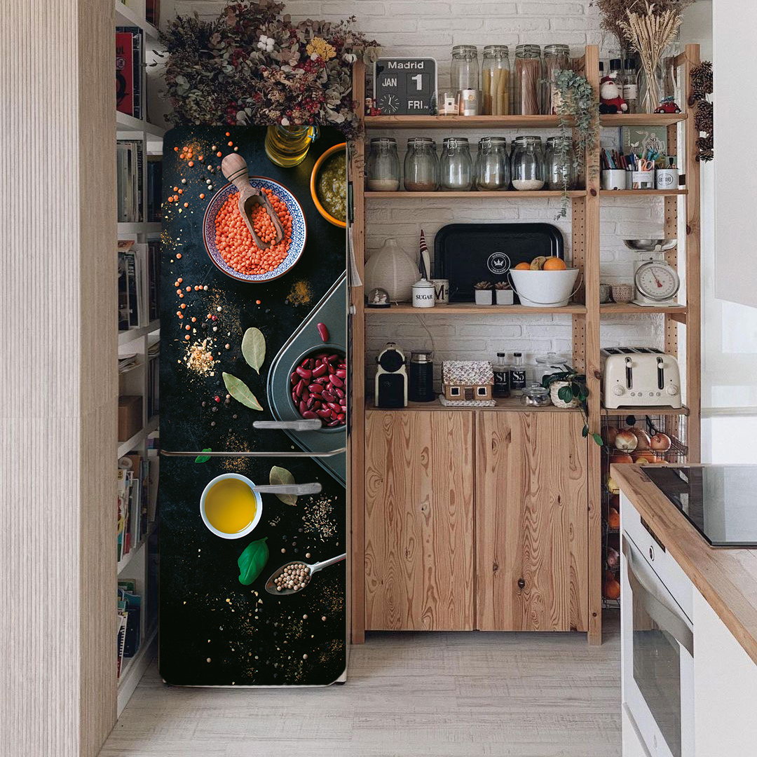 Если вы имеете нестандартный размер холодильника, мы с радостью изготовим для вас наклейку в индивидуальном размере. Прелесть наклеек не только в идеальной маскировке дефектов, правильно подобранная наклейка может превратить старую бытовую мебель в настоящий арт-объект и обычный фартук возле плиты или холодильник сделать изюминкой вашей кухни.