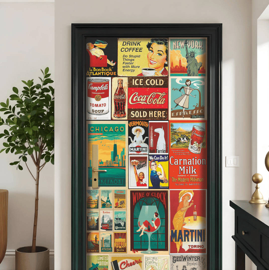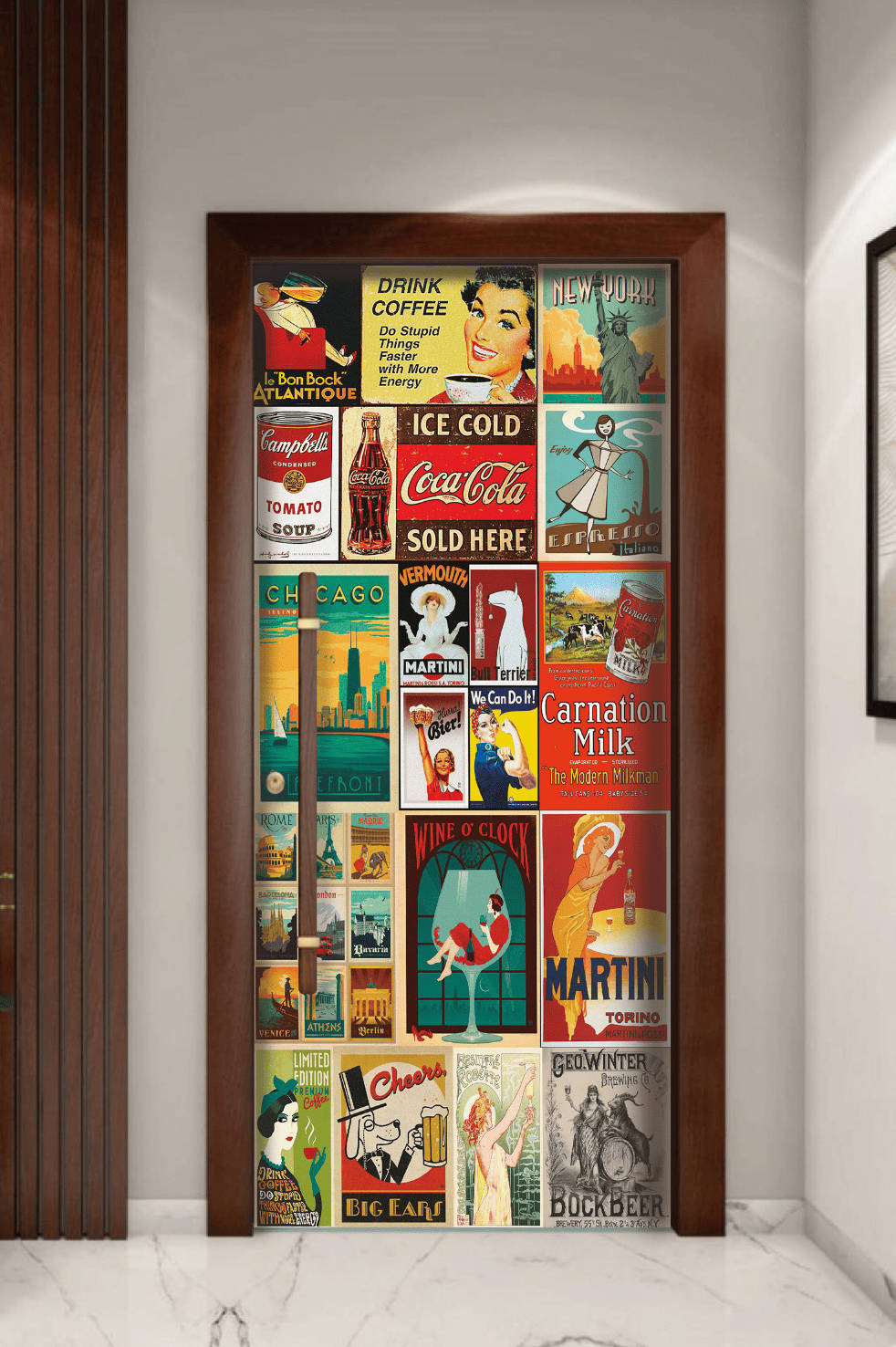 Виниловая наклейка на дверь в ретро-стиле — это идеальный элемент декора для создания атмосферного и стильного интерьера. Можно клеить на любую дверь: дсп, мдф, дерево, стекло и т. д.