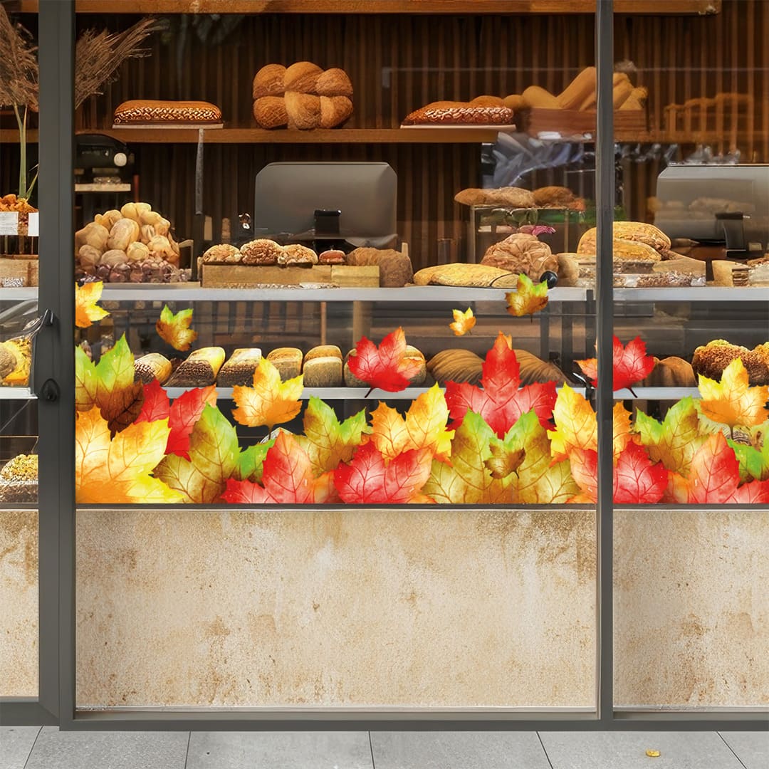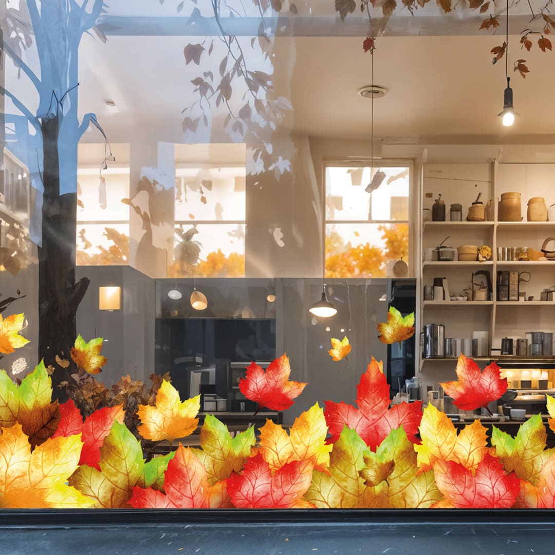 Наклейки на вітрини чи вікна з осіннім листям - актуальний осінній декор, який прослужить вам весь сезон. Можемо зробити під розмір вашої вітрини. На звороті білого кольору.