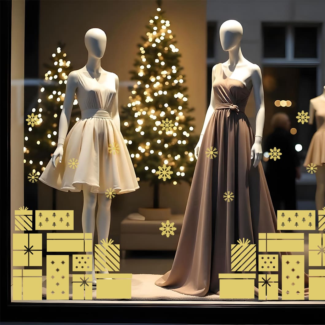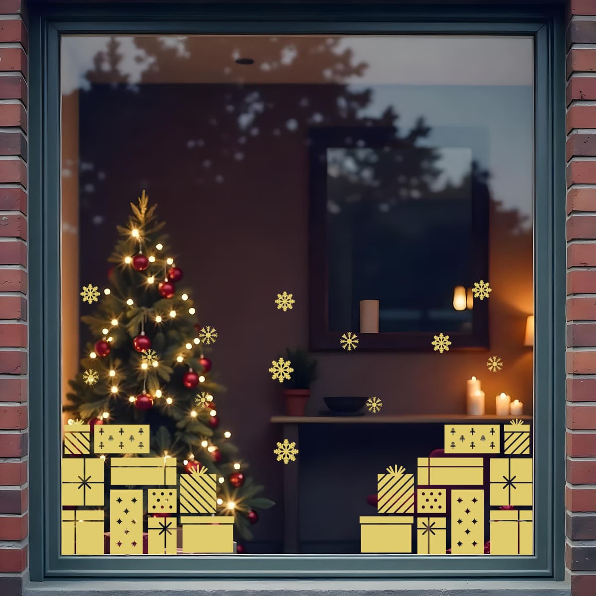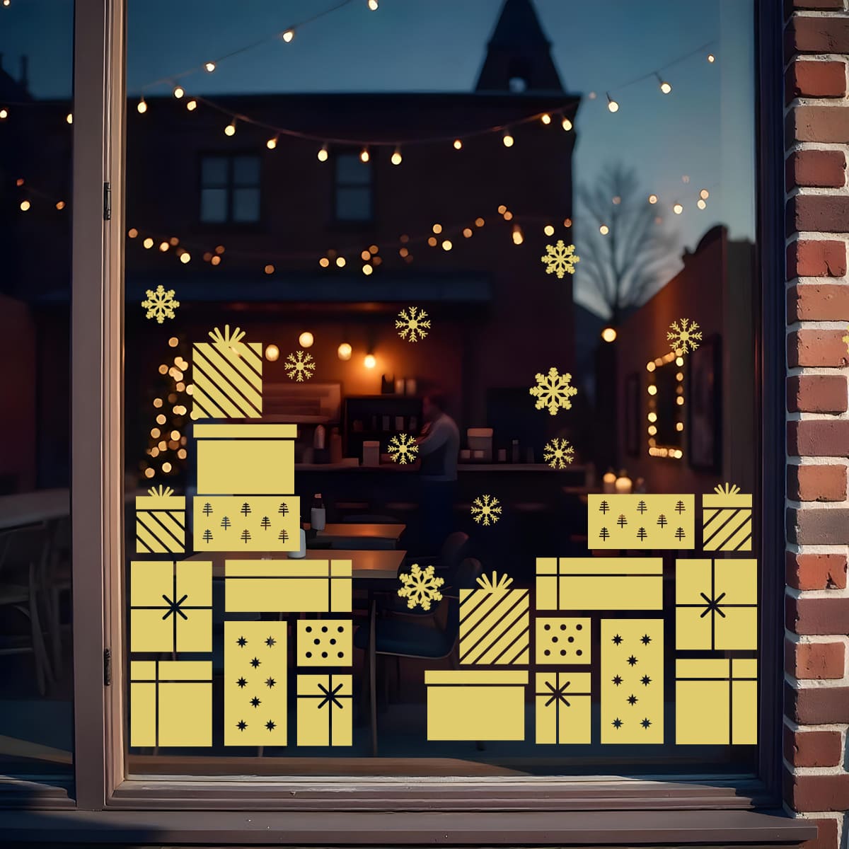 Новорічні наклейки на вітрину у вигляді подарунків завжди актуальний декор до свята. Колір наклейок може бути будь-яким на ваш вибір! Однаково виглядає з обох боків вікна. Кожен елемент клеїться окремо, можете створити композицію. Можемо виготовити під розмір вашої вітрини.