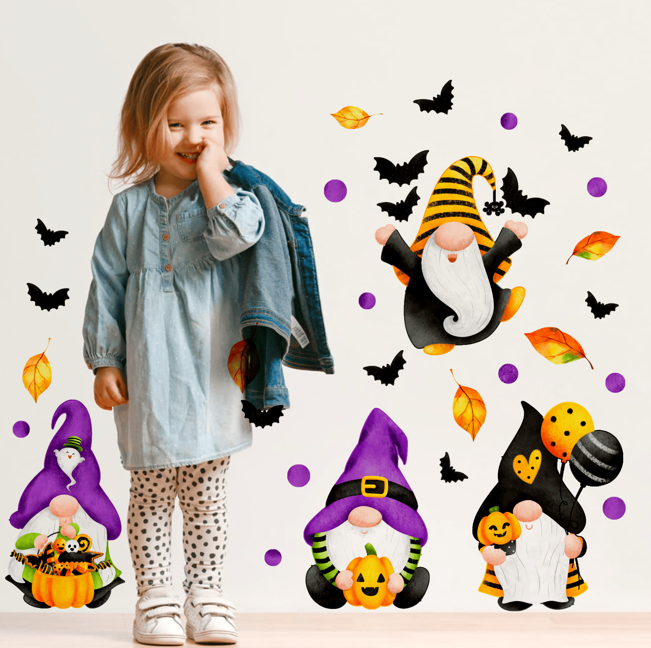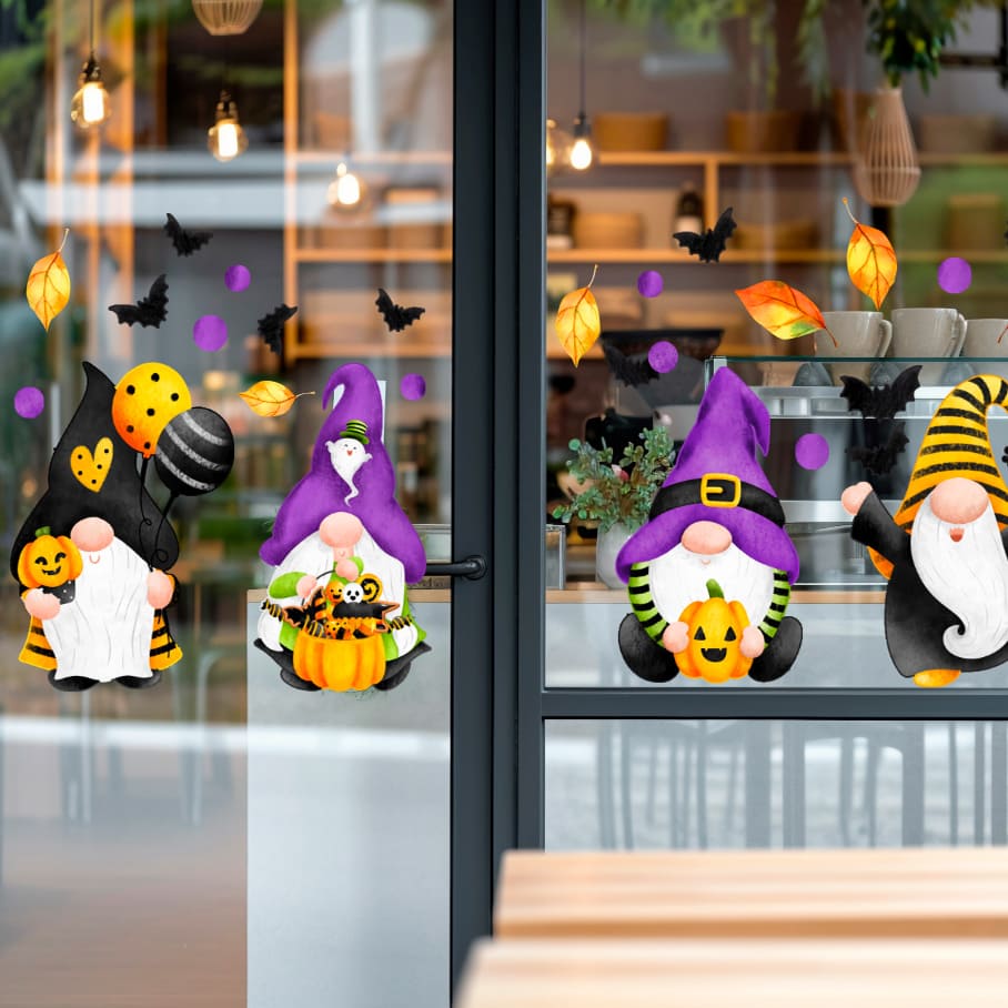 Наліпки з гномиками - чудова прикраса для осені чи Хелловіна. Вони підійдуть для декору кав’ярні, вітрини магазину, дитячої кімнати, школи або офісу, додаючи простору настрій та атмосферу свята. Кожен елемент окремо, зі звороту наліпки білого кольору.